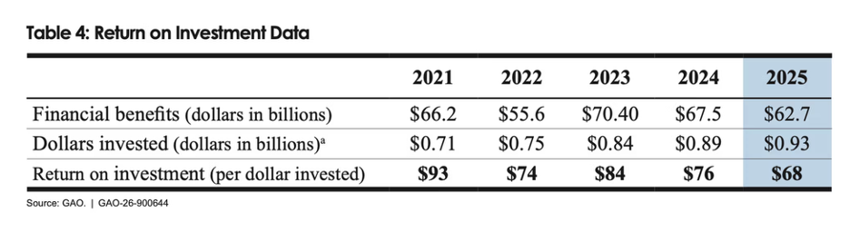 GAO’s ongoing work identifying duplication in government programs is a good example of why Congress needs to take a proactive role in overseeing and directing the watchdog agency’s work. According to its latest report on duplication, GAO has recommended more than 2,000 reforms to address duplication since 2011, which has resulted in "approximately $725 billion in financial benefits,” including “an increase of approximately $57 billion” between 2024 and 2025.