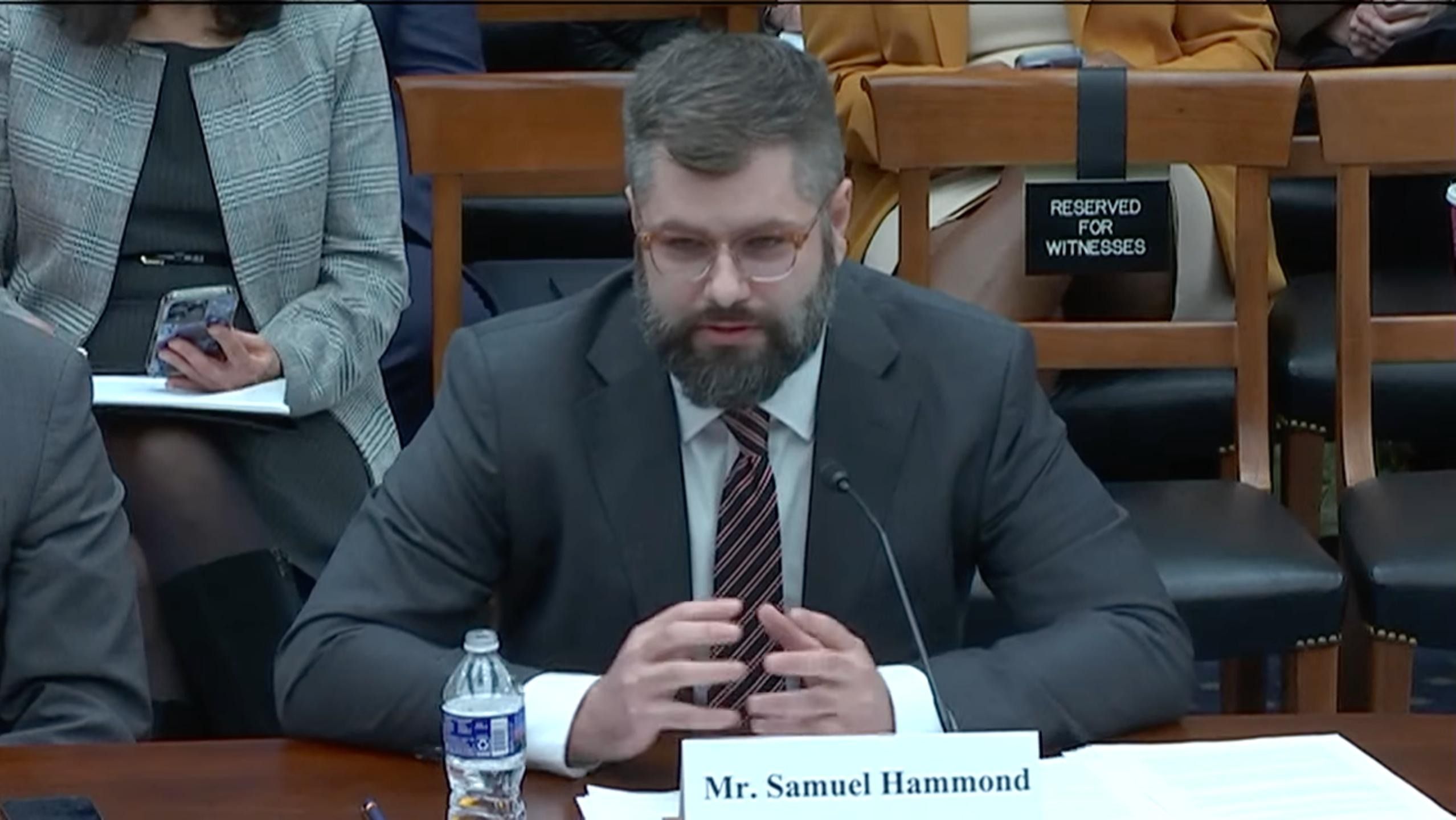 Chief Economist Sam Hammond testified before the House Science, Space, and Technology Committee, discussing how federal science and R&D can better support the private sector. He argued that a forward-thinking, less bureaucratic, and merit-based approach to federal science policy is key to maintaining U.S. technology leadership.