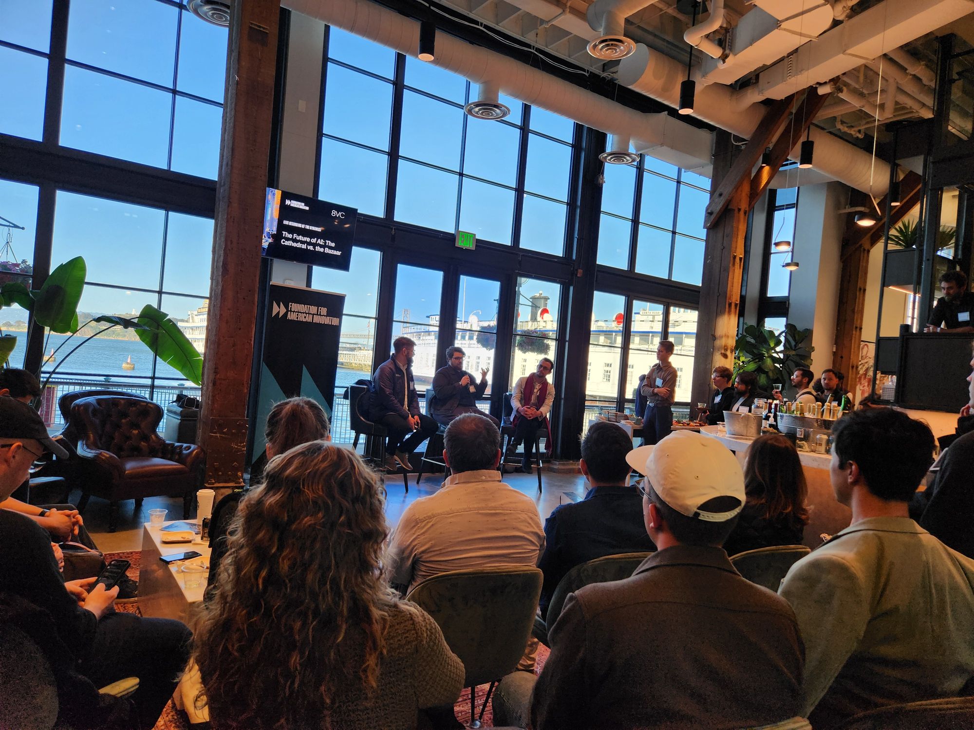 In May, we partnered with 8VC for a night in San Francisco on “The Future of AI: The Cathedral vs. the Bazaar.” Sam was joined by Andrew Côté from Hyperstition and Guillaume Verdon from Extropic to consider their visions for the future and the tradeoffs between centralized and decentralized AI.