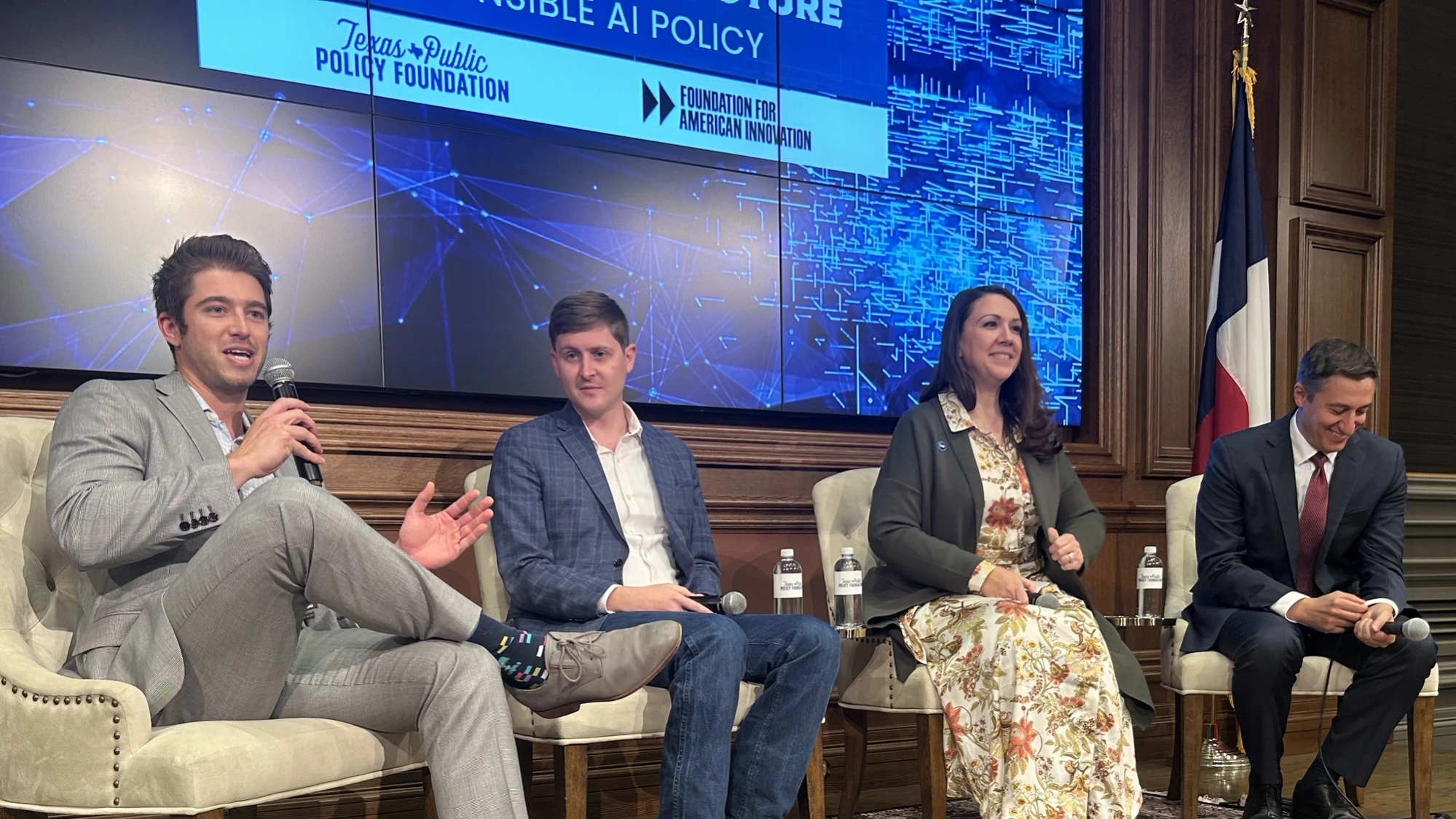 In Austin, we partnered with the Texas Public Policy Foundation for a discussion about responsible AI policy, featuring the Hon. Giovanni Capriglione, Director of Policy and Outreach Luke Hogg, and TPPF’s Hon. Zach Whiting and David Dunmoyer. The panel explored what AI can bring to the Texas economy, how it can be used to shrink government, and how responsible AI can be a net benefit for Texas.