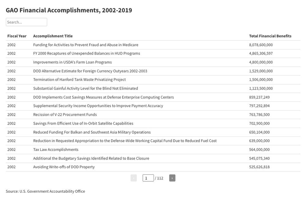 An Analysis of GAO’s Financial Accomplishments Between 2002 and 2019